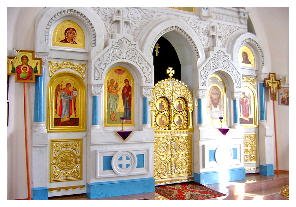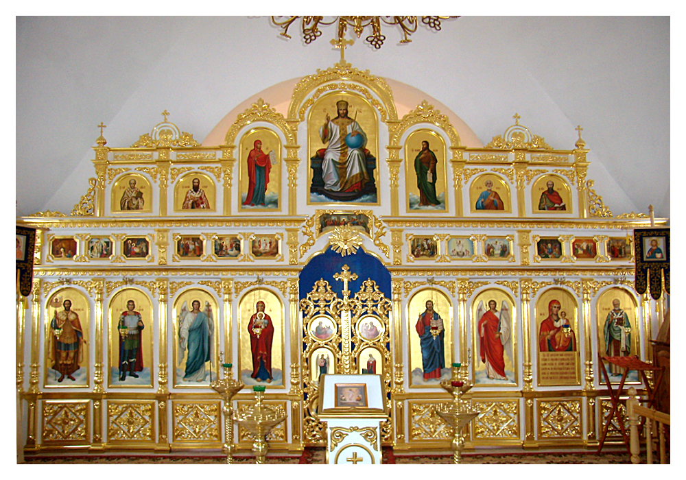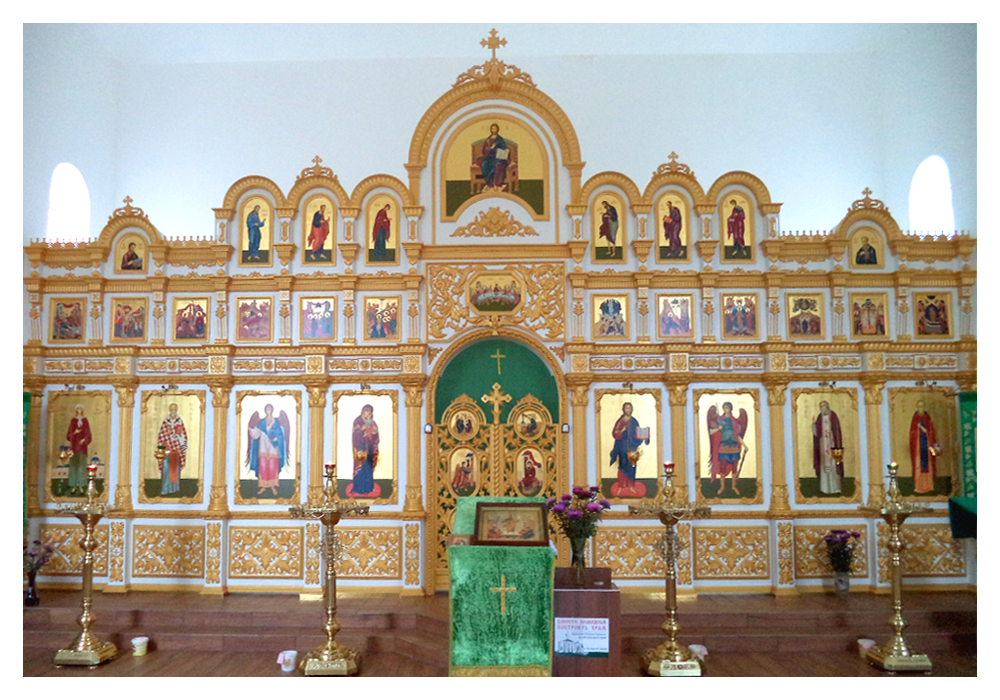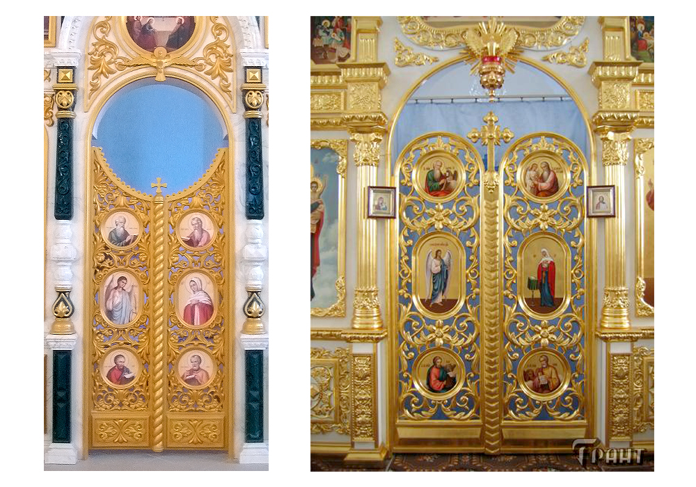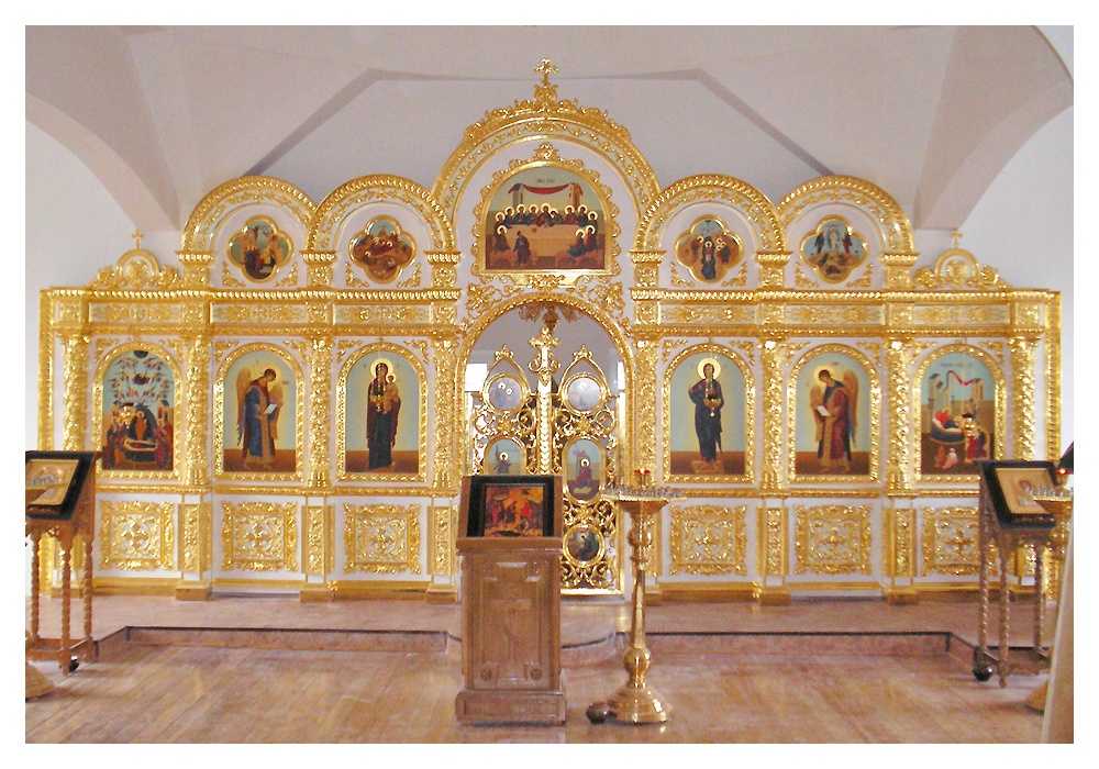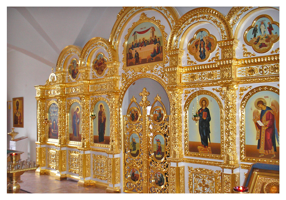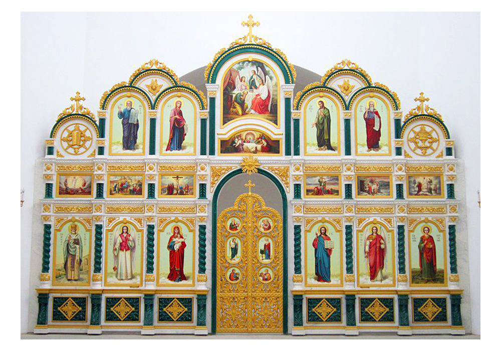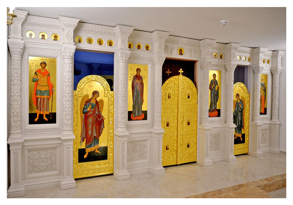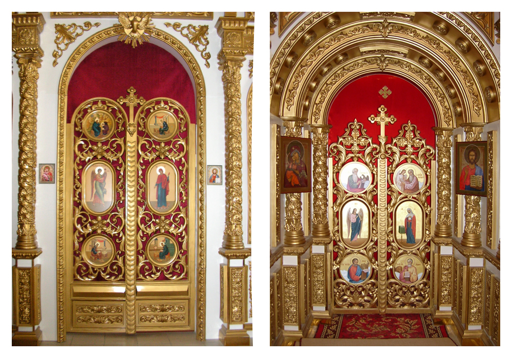 - Иконостасы из объемно-формованного стеклопластика с покрытием алкидными красками различной цветовой гаммы, сусальным золотом, серебром, поталью;