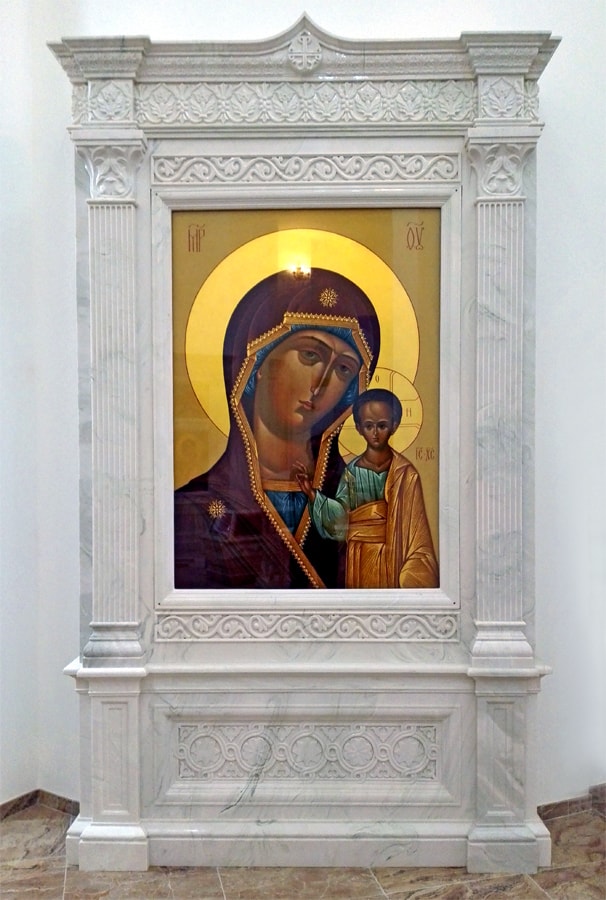 Киоты изготавливаются с использованием композитных материалов стеклопластика и литьевого камня, а также ценных пород дерева