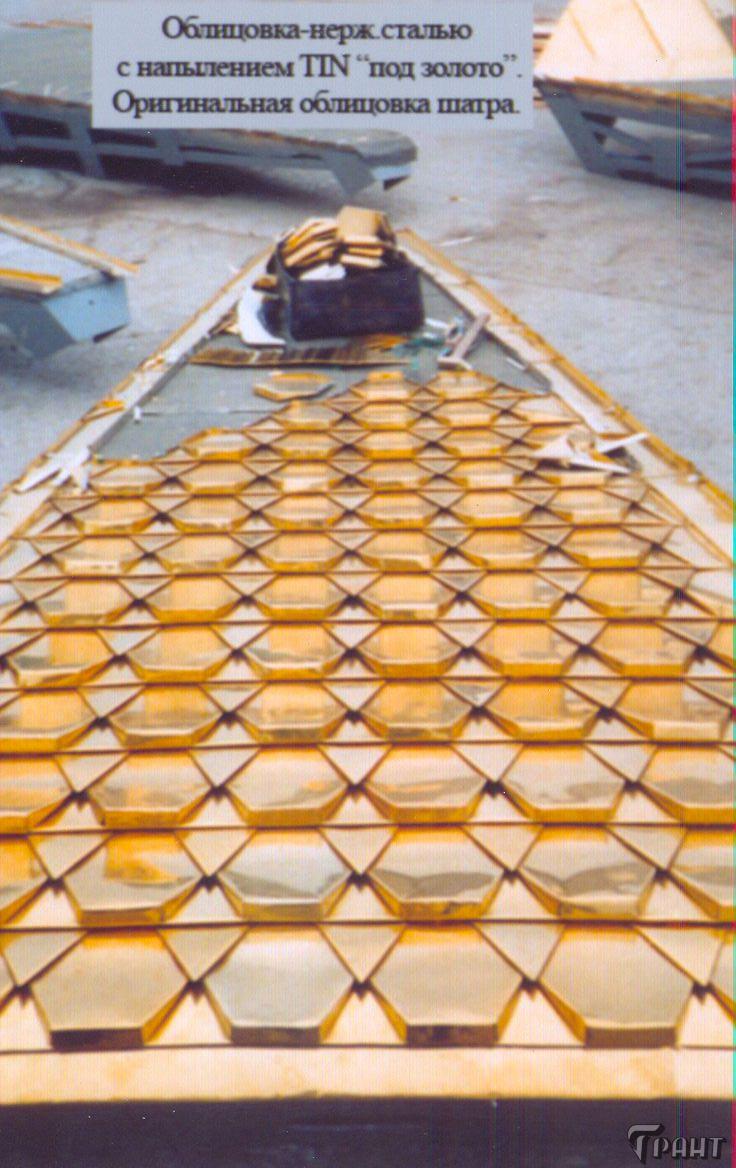 На ваш выбор - изготовление шатров с деревянной обрешеткой или стеклопластиковой. Основа - металлокаркас. Множество вариантов облицовки любым кровельным материалом: нержавеющая сталь с нитрид-титановым напылением, оксид-титановым напылением, оцинкованная сталь, медь и др.